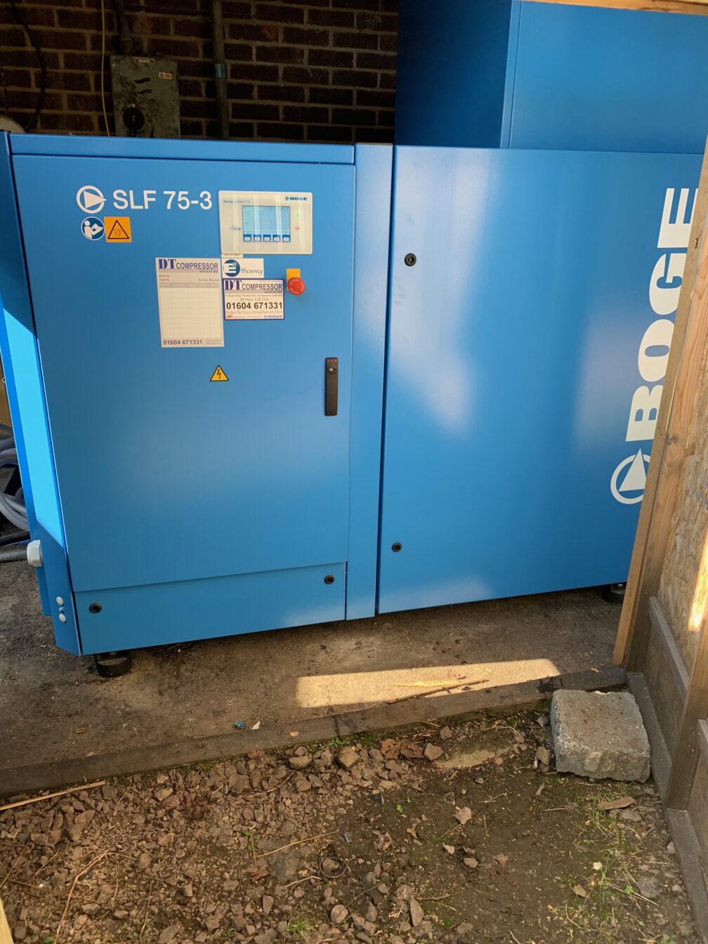 This direct drive, energy saving variable speed 55kw compressor has been squeezed into this shed replacing two aging 37kw fixed speed machines. The new SLF75-3 sits comfortably at 60% capacity whilst the previous compressors almost ran flat out trying to keep up with demand. Plus, when the end user needs to shot blast the BOGE effortlessly ramps up giving them a dependable, constant output they have always dreamed of. Less downtime equals more production!
